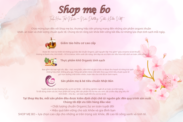 Tại Mẹ Bo,mỗi sản phẩm điều chứa đựng tất cả tình yêu, sự chăm chút và hiểu biết – như cách một người mẹ chọn lọc sản phẩm để nấu cho chính con mình.