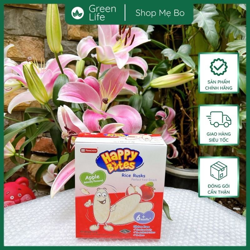 Bánh gạo Happy Bites vị việt quất, vị chuối, vị táo giòn và xốp nhưng lại mềm và tự tan khi cho vào miệng, giúp bé tập phản xạ nhai. Đồng thời, bánh cũng là thứ khiến nhiều bé yêu thích khi mọc răng, bị ngứa lợi vì ăn bánh khiến bé dễ chịu hơn, thoải mái hơn.