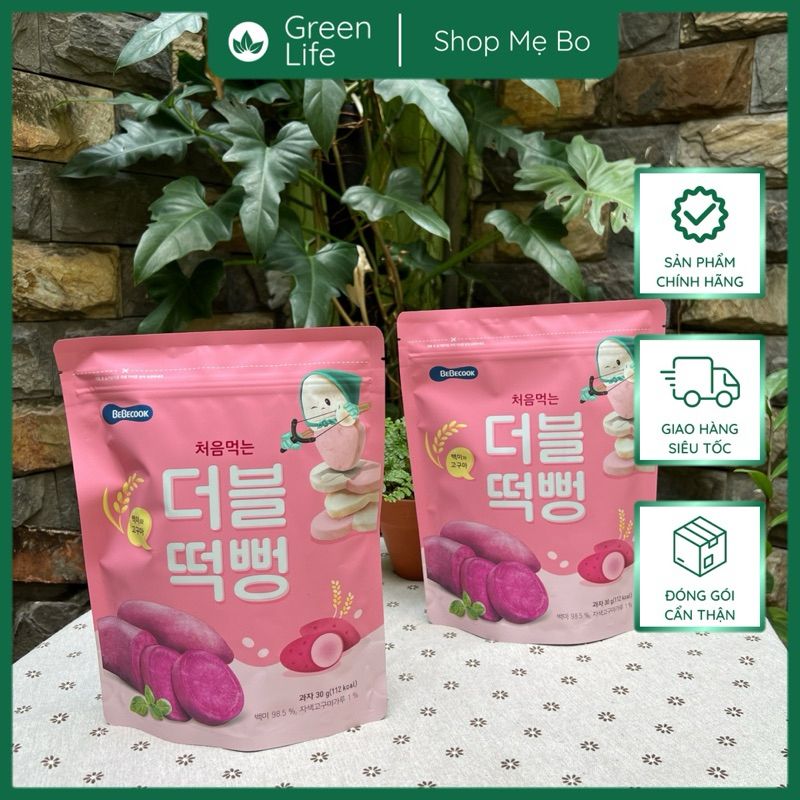 – Bánh gạo hai màu vị gạo trắng và khoai lang tím BeBecook cho bé được sản xuất từ hãng thực phẩm nổi tiếng Hàn Quốc giúp bố mẹ hoàn toàn yên tâm khi bé tập ăn dặm