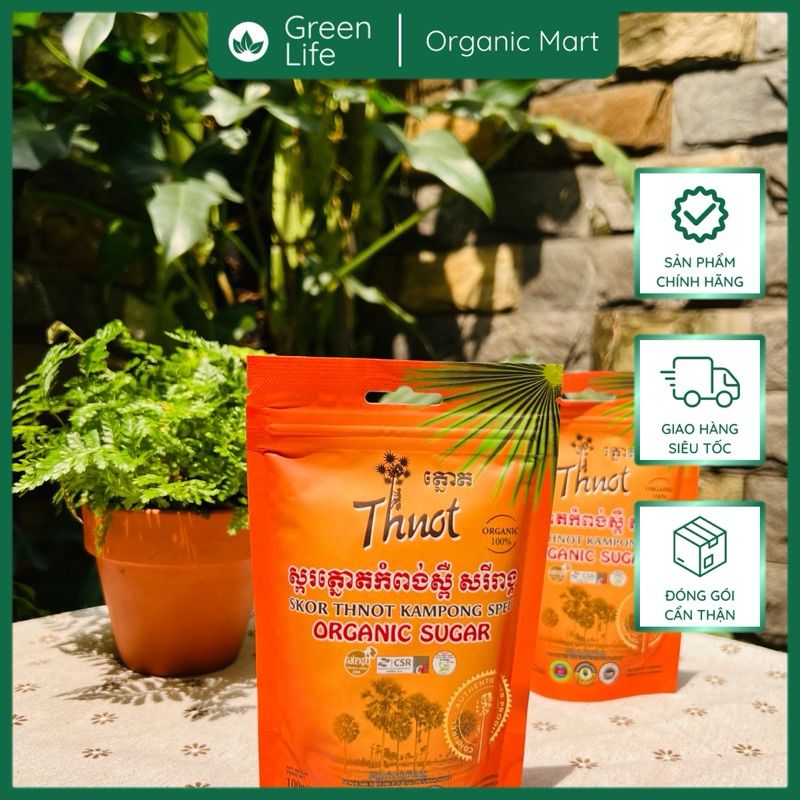 Đường thốt nốt hữu cơ được làm từ nhựa của cây thốt nốt ở Campuchia. Được chế biến một cách tự nhiên và có chứng nhận hữu cơ tiêu chuẩn của USDA organic & EU có thể dùng để thay thế cho đường thông thường.