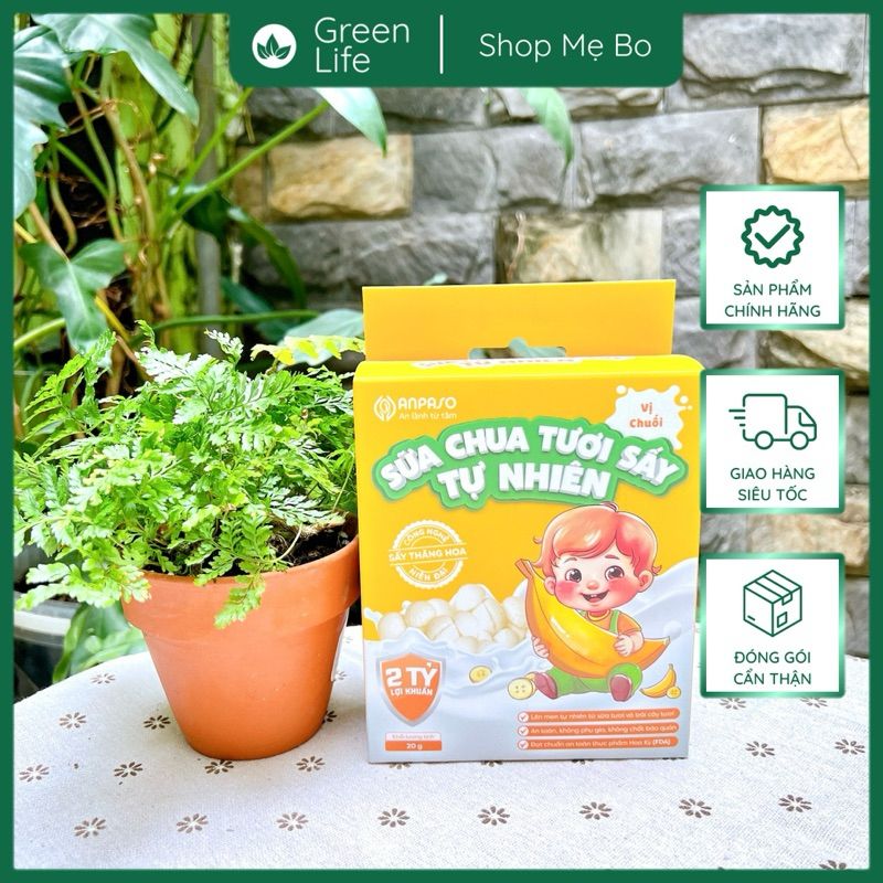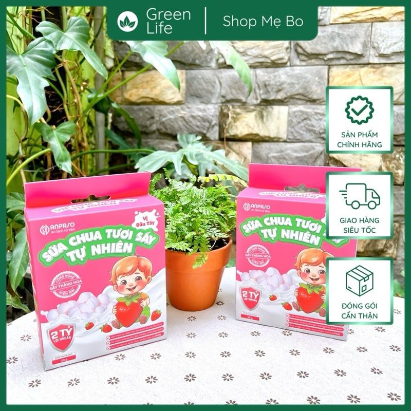 Sữa chua tươi sấy tự nhiên Anpaso - Ngọt nhẹ tự nhiên, với thành phần tự nhiên từ hoa quả tươi, sữa tươi. Đặc biệt, lợi khuẩn tự nhiên sẽ được chuyển hóa qua quá trình sấy thăng hoa (đông khô ở nhiệt độ <-40 độ C), mang đến cho bé một món ăn vặt dinh dưỡng, an toàn!